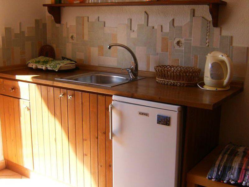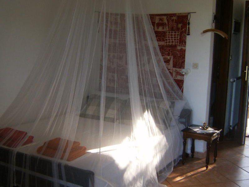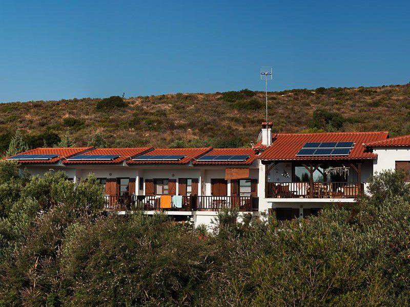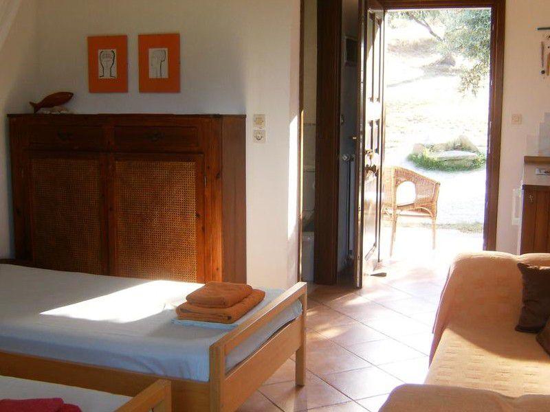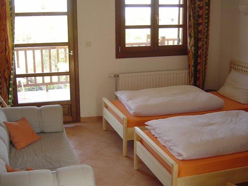 - και 1 μεγάλο διαμέρισμα 65μ2, που μπορεί να φιλοξενήσει με άνεση έως και 5 άτομα. Αποτελείται από ένα μεγάλο ενιαίο χώρο σαλονιού με καναπέ και πολυθρόνες, δορυφορική TV και πιάνο που το ακολουθούν δύο μονά κρεβάτια, μια πλήρως εξοπλισμένη κουζίνα και βεράντα που βγαίνει στον κήπο, WC/ντουζ και μία ξεχωριστή κρεβατοκάμαρα με διπλό κρεβάτι.