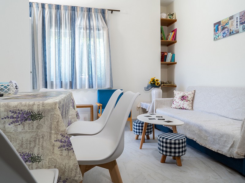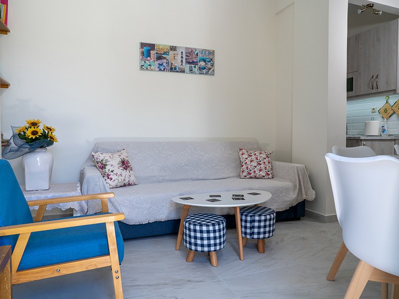 Πρόκειται για ένα ισόγειο διαμέρισμα 62 m2,πρόσφατα ανακαινισμένο, ιδανικό για διαμονή μέχρι 4 ατόμων το οποίο περιλαμβάνει ένα υπνοδωμάτιο με ένα διπλό κρεβάτι, ένα υπνοδωμάτιο με δύο μονά κρεβάτια με δυνατότητα τοποθέτησης ανωστρώματος , πλήρως εξοπλισμένη κουζίνα ,σαλόνι, wc, air condition, parking, free wifi, ευρύχωρο μπαλκόνι.