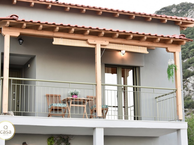 Στο μπαλκόνι μπορείτε να χαλαρώσετε και να απολαύσετε την εξωτερική ατμόσφαιρα του κήπου και την υπέροχη πανοραμική θέα του χωριού με φόντο τον επιβλητικό Άθωνα και το γαλάζιο του Αιγαίου.