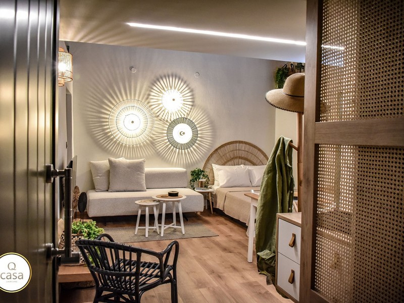 Το Q casa διαθέτει δωμάτια 2 έως 6 ατόμων με μπαλκόνι, κλιματισμό, smart TV, δωρεάν WiFi