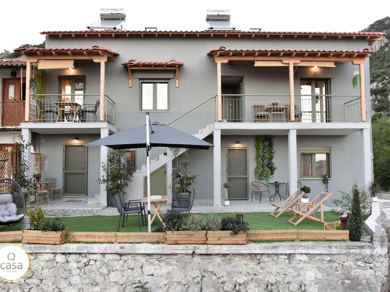 Το Q Casa κοσμεί το ψηλότερο σημείο της Συκιάς Χαλκιδικής στην περιοχή Κούκος, συνδυάζοντας αρμονικά το δροσερό βουνίσιο αεράκι με τη θέα της θάλασσας και του όρους Άθως.