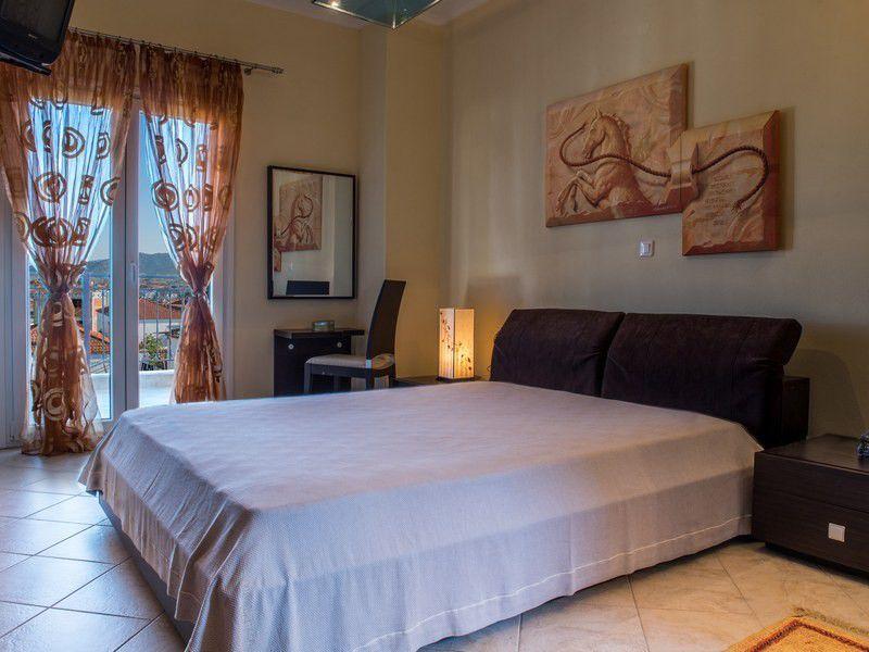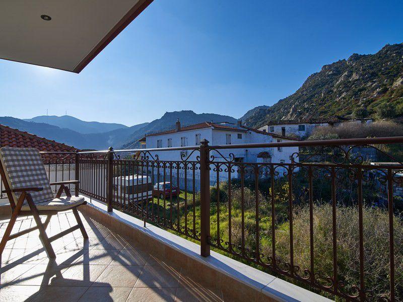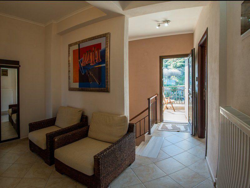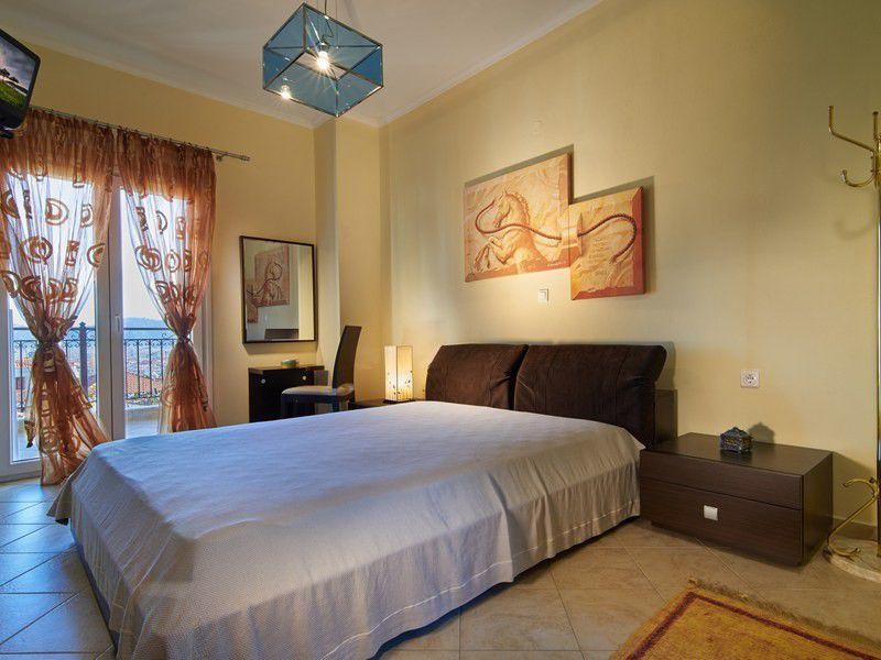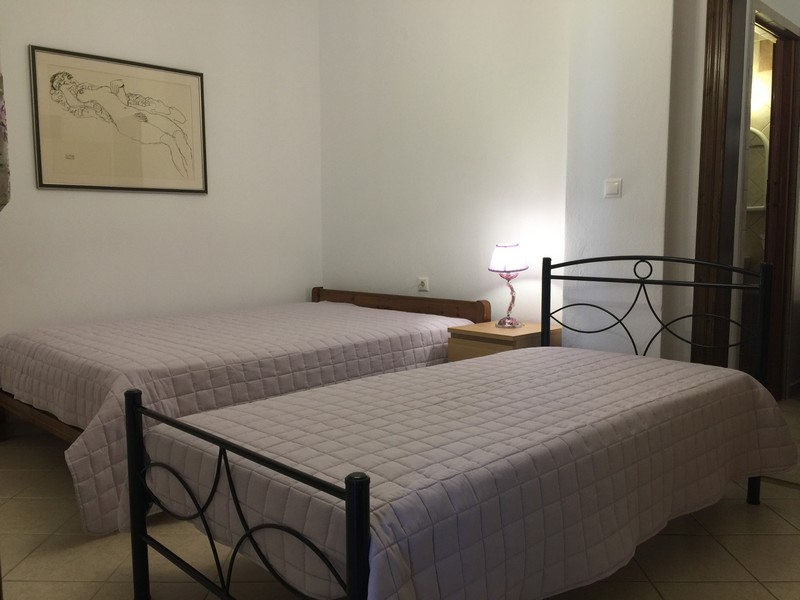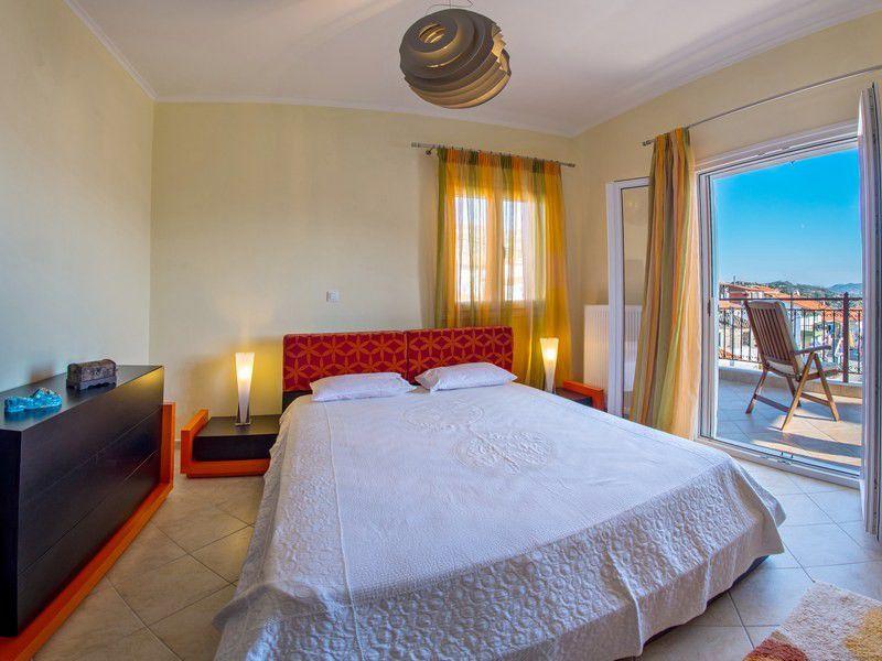 Στον επάνω όροφο υπάρχουν 3 δωμάτια με διπλό κρεβάτι, τα δύο με ιδιωτικό μπάνιο και όλα με μεγάλα μπαλκόνια και θέα.