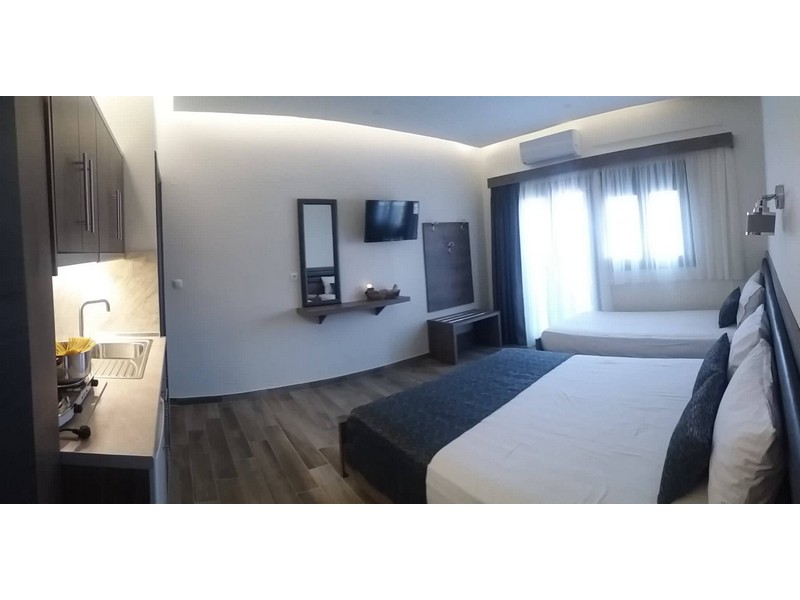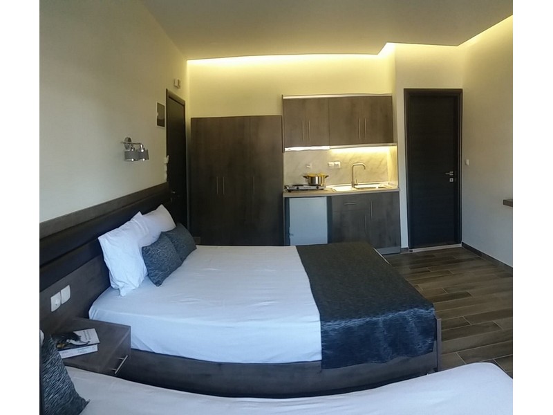 Το διαμέρισμα χωρίζεται σε δυο ξεχωριστούς χώρους , ο πρώτος έχει ένα διπλό κρεβάτι και ένα μονό και ο δευτερος ένα διπλό κρεβάτι.