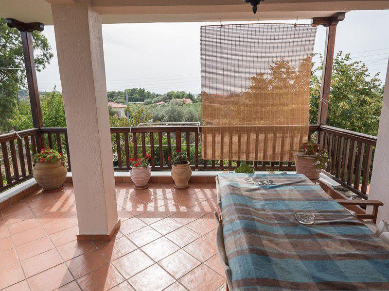 Από το ισόγειο υπάρχει άμεση πρόσβαση στο μεγάλο μπαλκόνι όπου θα βρείτε καρέκλες για όλους τους επισκέπτες.