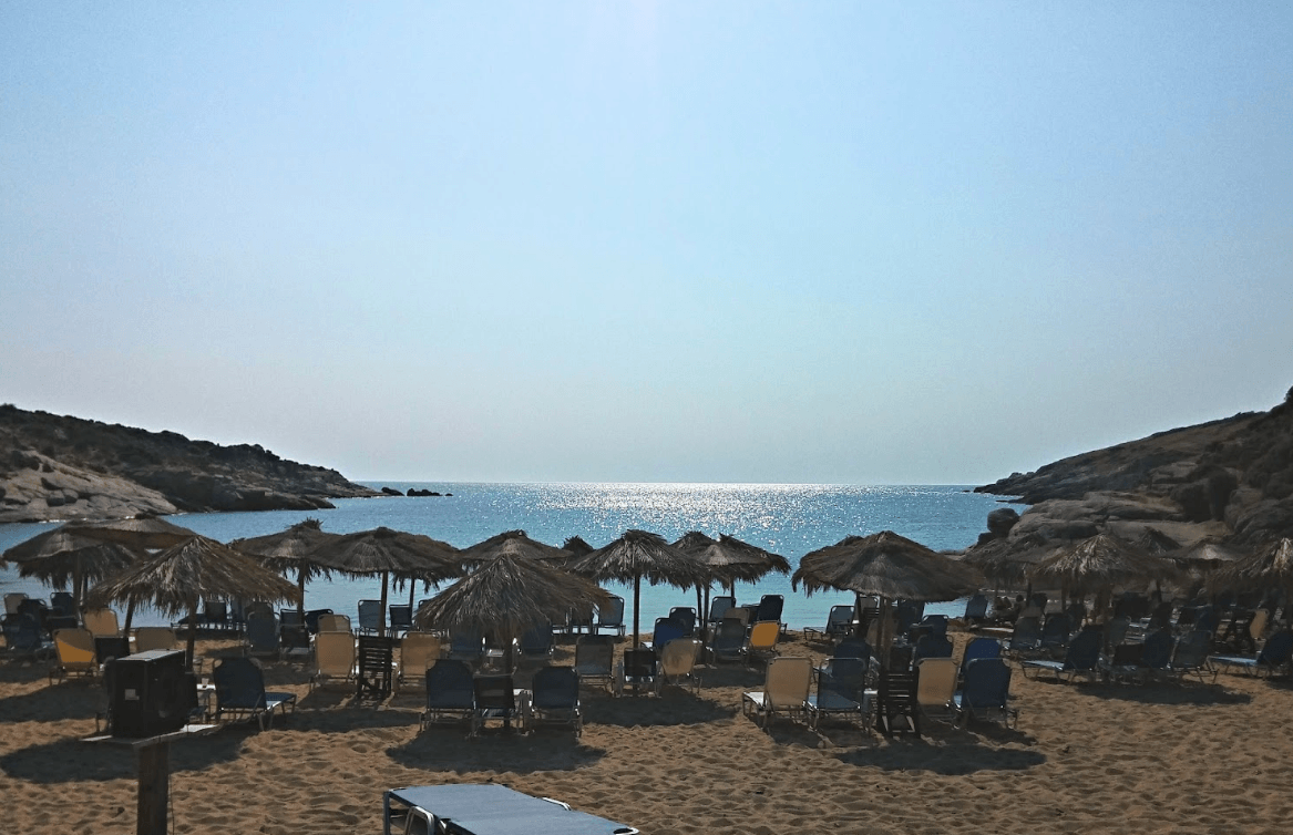 Ξαπλώστρες στην παραλία αλλά και τραπεζάκια λίγο πιο ψηλά, ιδανικό μέρος για να απολάυσεις από ένα καφέ έως και ένα ντόπιο τσίπουρο με καλό μεζεδάκι, το κρασάκι είναι επίσης μια πολύ καλή επιλογή.
