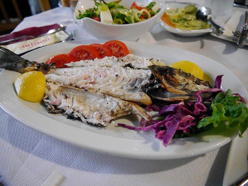 Προσφέρει καθημερινά κατά τη διάρκεια ου καλοκαιριού μοναδικά πιάτα από την Ελληνική κουζίνα, περίπου 30-40 διαφορετικές γεύσεις. Τα κρέατα που χρησιμοποιούνται στο εστιατόριο είναι αρίστης ποιότητας , καθώς και τα ψάρια και θαλασσινά είναι πάντα φρεσκα και προέρχονται από την Χαλκιδική.