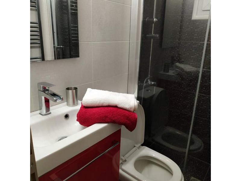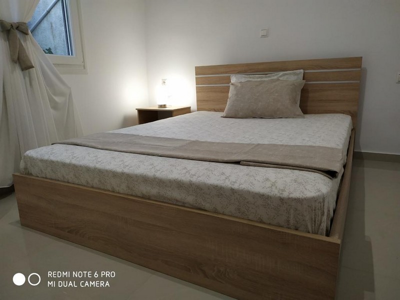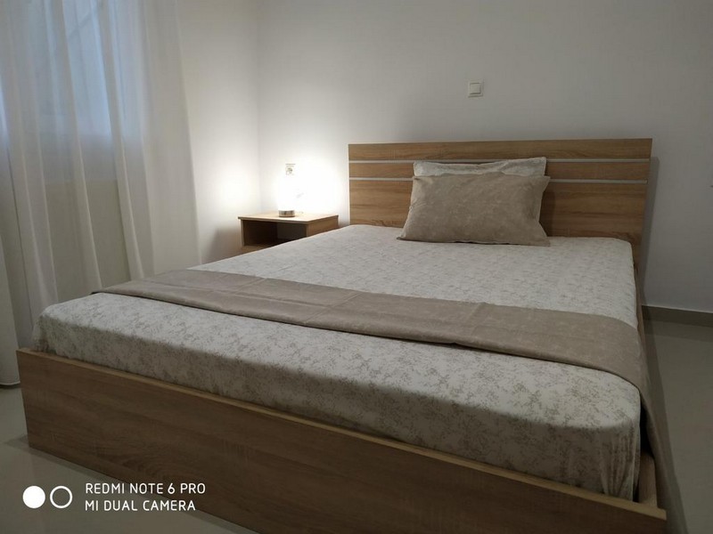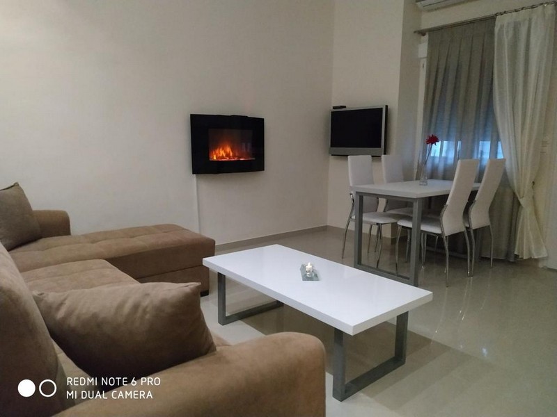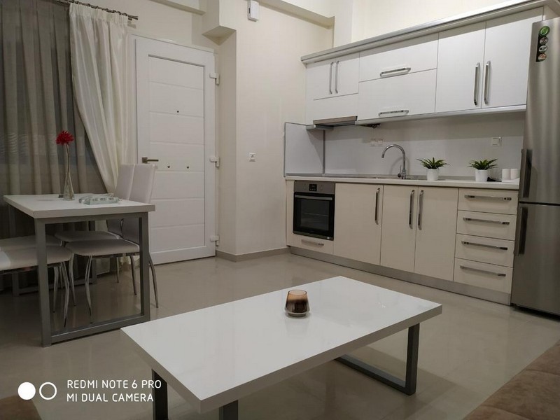 In the old square of Sykia, newly built, 45sqm. with an open plan kitchen and living room and a separate bedroom, ideal for families, 3 km from the beach.