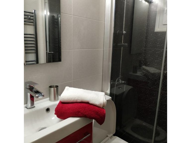 The apartment comprises 1 bedroom, a living room, a flat-screen TV, an equipped kitchen with a dining area, a bathroom with shower and a washing machine.