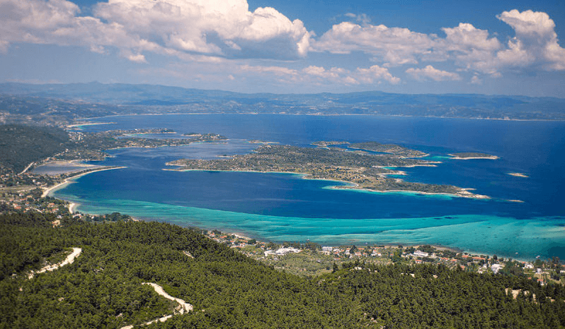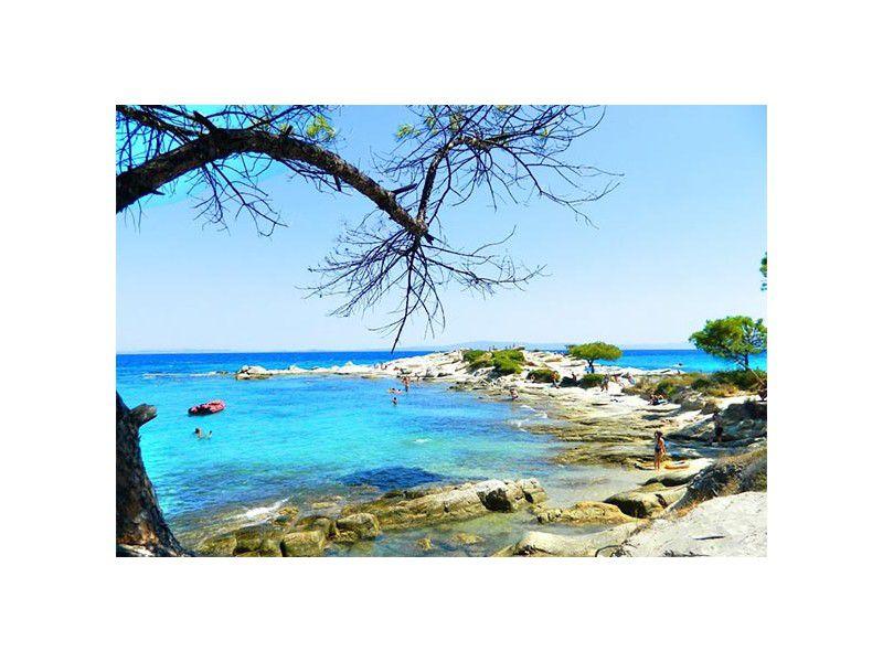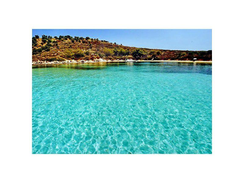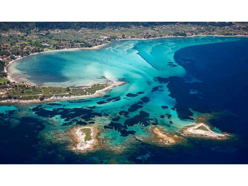 Nowhere else in Halkidiki the waters are so clear with their blue-green color and the wonderful view .