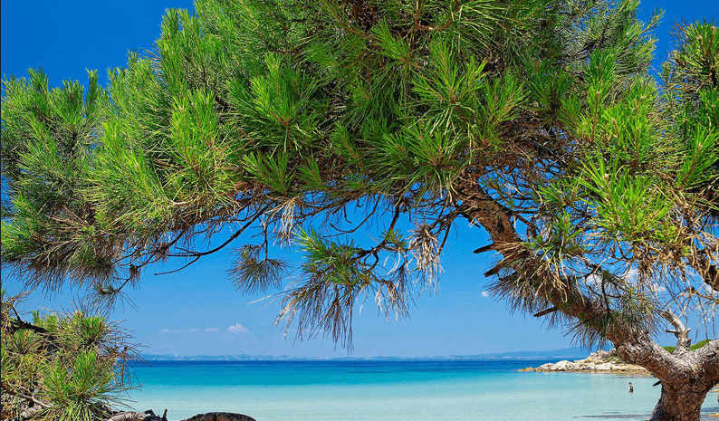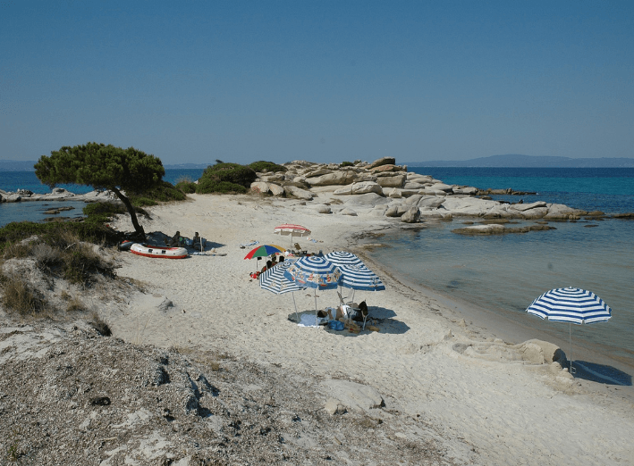 Beaches of Vourvourou are Karidi with pine trees reaching almost to the sea, Livari beach, and the beach of Bara.